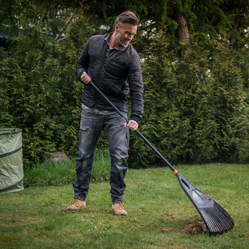 De Fiskars bladhark Solid™ XL assortiment onderscheidt zich door licht en stabiel gereedschap. De lange steel uit aluminium zorgt voor een aangename en rechte houding tijdens het werken. De hoogwaardige borstelharen op de bezems zorgen voor een optimale reinigingswerking. De tanden van de bladharken en harken zijn gemaakt van duurzaam kunststof. Alle stelen beschikken over een handige ophangmogelijkheid. Deze Solid bladhark XL is ideaal voor het bijeen harken van bladeren, onkruid en gras. De extra brede kunststof kop zorgt voor een groter werkbereik. Door de ergonomische handgreep in het blad kun je verzamelde bladeren eenvoudig oprapen.