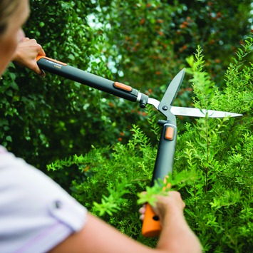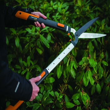 De Fiskars heggenschaar telescopisch Smartfit beschikt over een transmissiemechanisme wat het mogelijk maakt om de kracht volledig over de messen te verdelen, van het begin tot aan de punt. Door het lichte materiaal van de handgrepen (glasvezel versterkt polyamid) kunnen alle snoeiwerkzaamheden met weinig krachtinspanning worden uitgevoerd. Alle Fiskars heggenscharen zijn ontwikkeld volgens de Fiskars designfilosofie: duurzaam en ergonomisch tuingereedschap ontwikkelen, waarmee tuinieren makkelijker, lichter, efficiënter en eenvoudigweg leuker wordt.