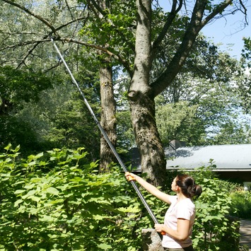 - Snoeien op grote hoogte kan door de trekknop aan het einde van de steel