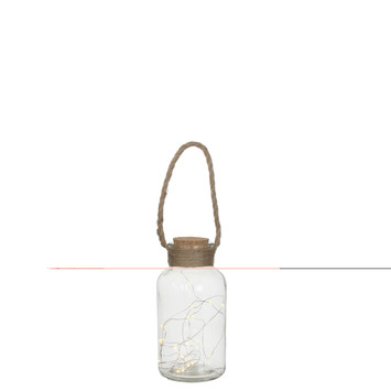 Waar je deze Fles led 20 h21xd10 cm decoratie ook neerzet, de sfeer wordt er alleen maar mooier op. De zuinige LED lampjes in de glazen fles zorgen voor subtiele verlichting. De LED lampjes werken op batterijen (exclusief), dus je bent niet afhankelijk van een stopcontact. Voor een mooi stilleven of een tafeldecoratie heb je niet meer nodig dan deze fles. Zelf ophangen is een mogelijkheid door de lus van sisal touw.