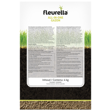 Fleurella All-in-One Gazon is een totaalkuur voor het gazon en bestaat voornamelijk uit organische bestanddelen. De gebruikte grondstoffen zijn allemaal toegelaten in de biologische landbouw . Deze meststof versterkt de grasmat en stimuleert de uitlopervorming van de graswortels. De aanwezige stikstof stimuleert een vlot herstel van uw gazon na de winter. Mosvorming wordt indirect tegengegaan door een hoog gehalte aan K (kalium). Een dicht gazon laat minder mos- en onkruidgroei toe. De organische stoffen en het aanwezige Mg (magnesium) in deze meststof zorgen snel voor een diepgroener gazon. Deze meststof werkt vanaf de eerste dag tot wel 4 maanden lang en geeft haar voeding direct maar geleidelijk af. Deze gazonmeststof bevat 8% Ca (calcium) of kalk, dat door zijn werking verzuring van de grond tegengaat en de pH-waarde op niveau houdt.