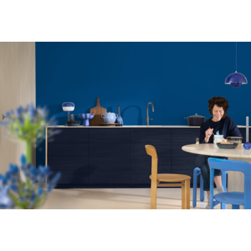 In de dop van de kleurtester zit een kleine vachtroller waarmee je de verf meteen op de muur kunt aanbrengen. Je hoeft dus niks apart klaar te zetten. De verf is watergedragen, heeft een matte glansgraad en is na 1 uur stofdroog. Na 24 uur is de kleur volledig opgedroogd zodat je goed kunt beoordelen of het de juiste is.