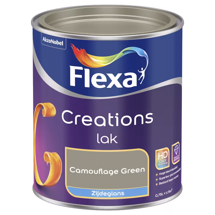 Flexa Creations Lak Zijdeglans Camouflage Green 750ml biedt een zijdeglans afwerking voor hout, harde kunststoffen en voorbehandeld metaal. De lak zorgt voor een licht glanzende uitstraling en vloeit mooi uit voor een glad resultaat. De lak heeft een hoge dekkracht en dekt goed in weinig lagen. Door de zijdeglans krijgt het oppervlak een licht reflecterende uitstraling.