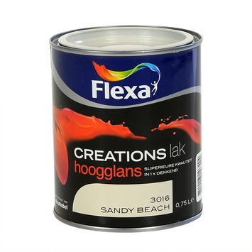 Flexa Creations hoogglans in de kleur sandy beach met een watergedragen basis heeft een kras- en stootvaste afwerking. De lak is geschikt voor binnen en buiten op hout, is sneldrogend en geurarm. De hoogglans lak van Flexa Creations heeft een uitstekende dekking en is eenvoudig te reinigen met water. Naast de standaard beschikbare kleuren is deze lak in meer dan 30.000 verschillende kleuren te verkrijgen bij onze verfmengbalie in de GAMMA bouwmarkt. De inhoudsmaat is 750 ml.