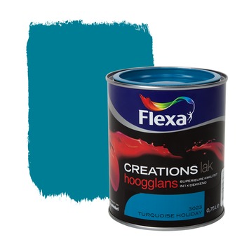 Flexa Creations hoogglans in de kleur turquoise holiday met een watergedragen basis heeft een kras- en stootvaste afwerking. De lak is geschikt voor binnen en buiten op hout, is sneldrogend en geurarm. De hoogglans lak van Flexa Creations heeft een uitstekende dekking en is eenvoudig te reinigen met water. Naast de standaard beschikbare kleuren is deze lak in meer dan 30.000 verschillende kleuren te verkrijgen bij onze verfmengbalie in de GAMMA bouwmarkt. De inhoudsmaat is 750 ml.