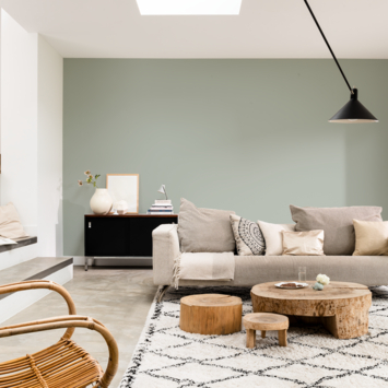Tranquil Dawn is een lichte koelblauwe kleur met een vleugje groen. De kleur combineert goed met neutrale tinten zoals grijs, wit en lichte bruintinten maar laat zich ook mooi combineren met groentinten. Tranquil Dawn werkt goed samen met lichte houtsoorten voor een natuurlijke uitstraling en past goed binnen Scandinavische, Japandi, moderne en minimalistische interieurstijlen.