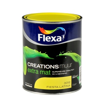 Flexa Creations muurverf extra mat fiesta latina is een superieure kwaliteit muurverf voor muren en plafonds binnenshuis. De muurverf is watergedragen. Doordat de verf eenvoudig reinigbaar en schrobvast is, is de muurverf ideaal voor ruimten die gemakkelijk vochtig of vuil worden, zoals de badkamer, kinderkamer of keuken. Met de unieke en speciaal ontworpen kleuren heeft u volop keuze voor een eigentijds, onverwachts of vertrouwd interieur. Flexa Creations extra mat muurverf heeft een uitstekende dekking en is gemakkelijk aan te brengen. Naast de standaard beschikbare kleuren is deze verf in meer dan 30.000 verschillende kleuren te verkrijgen bij onze verfmengbalie in de GAMMA bouwmarkt. De inhoudsmaat is 1 liter.