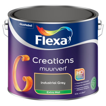 Flexa Creations Muurverf Extra Mat Industrial Grey 2,5 liter biedt een luxe afwerking voor je muren, met een extra mat resultaat. Dankzij de extra matte afwerking worden oneffenheden in de muur minder zichtbaar waardoor je een egaal resultaat krijgt. De verf heeft een hoge dekking en is eenvoudig aan te brengen.