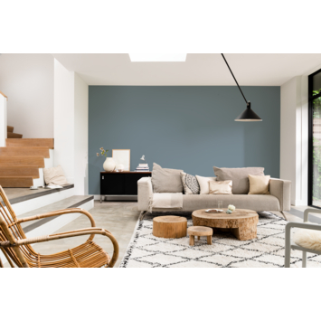 Denim Drift is een gedempte blauwtint met een grijze ondertoon die zorgt voor een ingetogen en veelzijdige basis. De kleur is goed toepasbaar in woonkamers, keukens of werkkamers en laat zich combineren met lichte houtsoorten, zachte textielsoorten en neutrale accenten. Denim Drift past goed bij kleuren zoals pastelgroen, crème of lichtgrijs en werkt binnen uiteenlopende interieurstijlen zoals Scandinavisch, industrieel of modern minimalistisch.