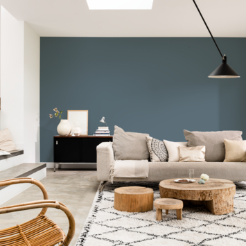 Faded Indigo is een gedempte blauwtint met een grijze ondertoon. De kleur is geschikt voor diverse ruimtes zoals woonkamers, slaapkamers of werkkamers. Faded Indigo combineert mooi met lichte neutrale kleuren zoals wit, crème en lichtgrijs en vormt ook een sterk geheel met natuurlijke materialen zoals hout, wol of linnen. Deze kleur past goed binnen Scandinavische, moderne of industriële interieurstijlen.