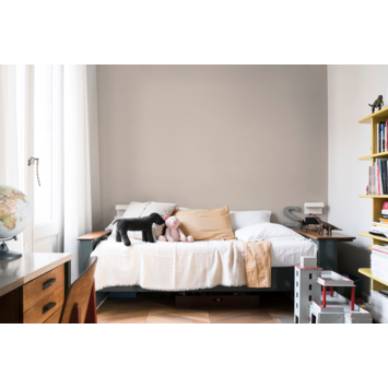 Luxurious Silk is een verfijnde greige tint met een zachte, warme ondertoon. De kleur straalt rust en elegantie uit en vormt een mooie basis voor stijlvolle woonkamers, slaapkamers of werkkamers. Luxurious Silk combineert moeiteloos met crème, lichtgrijs en warme metalen zoals goud of koper, en sluit goed aan bij materialen zoals fluweel, hout of linnen. Deze tint past perfect in moderne klassieke, elegante of minimalistische interieurs en zorgt voor een gebalanceerde, zachte sfeer in huis.