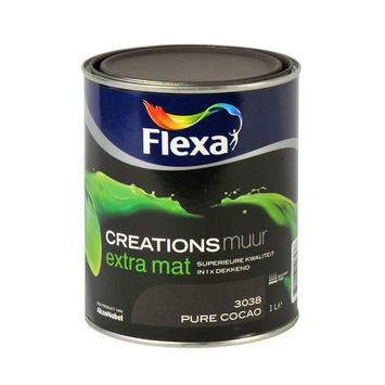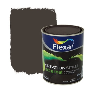 Flexa Creations muurverf extra mat pure cacao is een superieure kwaliteit muurverf voor muren en plafonds binnenshuis. De muurverf is watergedragen. Doordat de verf eenvoudig reinigbaar en schrobvast is, is de muurverf ideaal voor ruimten die gemakkelijk vochtig of vuil worden, zoals de badkamer, kinderkamer of keuken. Met de unieke en speciaal ontworpen kleuren heeft u volop keuze voor een eigentijds, onverwachts of vertrouwd interieur. Flexa Creations extra mat muurverf heeft een uitstekende dekking en is gemakkelijk aan te brengen. Naast de standaard beschikbare kleuren is deze verf in meer dan 30.000 verschillende kleuren te verkrijgen bij onze verfmengbalie in de GAMMA bouwmarkt. De inhoudsmaat is 1 liter.