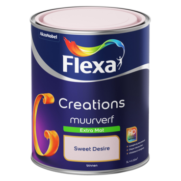 Geef je interieur een nieuwe impuls met Flexa Creations. Flexa Creations muurverf sweet desire extra mat is watergedragen en dekt optimaal. Doordat de verf zeer goed reinigbaar en schrobvast met kleurbehoud is, is de muurverf ideaal voor ruimten die gemakkelijk vochtig of vuil worden, zoals de badkamer, kinderkamer of keuken. De HD color technology zorgt voor diepe intense kleuren. De unieke formulering vermindert vervaging van kleurpigmenten door UV-licht. Je kunt zo extra lang genieten van jouw Flexa Creations kleurkeuze. Naast de standaard beschikbare kleuren is deze verf verschillende kleuren te verkrijgen bij de verfmengbalie in de GAMMA bouwmarkt. Flexa Creations: een prachtige manier om jouw wereld te personaliseren met kleur! De inhoudsmaat is 1 liter.
