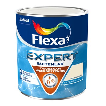 Flexa Expert buitenlak bentheimer geel halfglans 750 ml is een halfglans, terpentinegedragen buitenlak. De high solid vochtregulerende lak is een één-pot-systeem en kan direct op kaal hout of over bestaande terpentine verdunbare dekkende verf- lagen toegepast worden. Hierdoor is Flexa Expert lak zeer geschikt als dekkende lak voor buiten. De lak heeft een hoge duurzaamheid, biedt tot 7 jaar bescherming, is gemakkelijk aan te brengen en heeft een uitstekende dekking. De inhoudsmaat is 750 ml.
