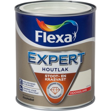 Flexa Expert hoogglans houtlak in de kleur crème wit is watergedragen en geschikt voor al uw houtwerk binnenshuis. De houtlak biedt optimale bescherming door de diamond tough technology, wat zorgt voor een extra harde diamanten toplaag. Flexa Expert houtlak is daarom stoot- en krasvast en duurzaam. De hoogglans houtlak van Flexa Expert is gemakkelijk aan te brengen en heeft een optimale dekking. Lichte kleuren op terpentinebasis kunnen binnenshuis naar verloop van tijd geel worden op plaatsen die niet veel in contact komen met daglicht. Op deze plaatsen kunt u daarom het beste een lak op waterbasis gebruiken, zoals deze Flexa Expert lak. De inhoudsmaat is 750 ml.