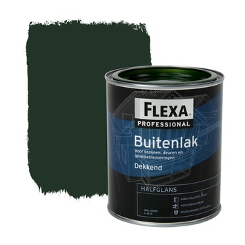 Flexa Professional buitenlak dennengroen halfglans 750 ml is een halfglans, terpentinegedragen buitenlak. De high solid vochtregulerende lak is een één-pot-systeem en kan direct op kaal hout of over bestaande terpentineverdunbare dekkende verf- of beitslagen toegepast worden. Hierdoor is Flexa Professional lak zeer geschikt als dekkende lak of beits voor buiten. De lak heeft een hoge duurzaamheid, is gemakkelijk aan te brengen en heeft een uitstekende dekking. De inhoudsmaat is 750 ml.