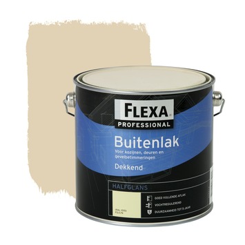 Flexa Professional buitenlak licht ivoor halfglans 2,5 liter is een halfglans, terpentinegedragen buitenlak. De high solid vochtregulerende lak is een één-pot-systeem en kan direct op kaal hout of over bestaande terpentineverdunbare dekkende verf- of beitslagen toegepast worden. Hierdoor is Flexa Professional lak zeer geschikt als dekkende lak of beits voor buiten. De lak heeft een hoge duurzaamheid, is gemakkelijk aan te brengen en heeft een uitstekende dekking. De inhoudsmaat is 750 ml.