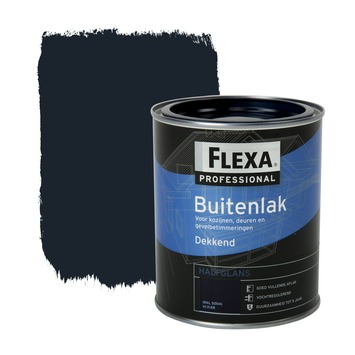 Flexa Professional buitenlak zwartblauw halfglans 750 ml is een halfglans, terpentinegedragen buitenlak. De high solid vochtregulerende lak is een één-pot-systeem en kan direct op kaal hout of over bestaande terpentineverdunbare dekkende verf- of beitslagen toegepast worden. Hierdoor is Flexa Professional lak zeer geschikt als dekkende lak of beits voor buiten. De lak heeft een hoge duurzaamheid, is gemakkelijk aan te brengen en heeft een uitstekende dekking. De inhoudsmaat is 750 ml.