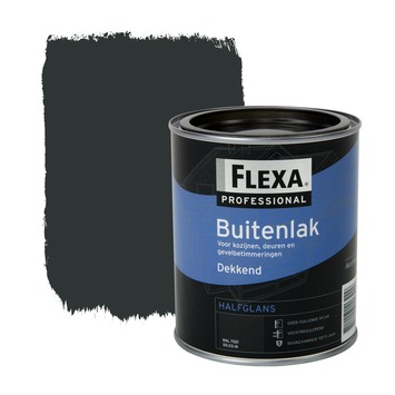 Flexa Professional buitenlak zwartgrijs halfglans 750 ml is een halfglans, terpentinegedragen buitenlak. De high solid vochtregulerende lak is een één-pot-systeem en kan direct op kaal hout of over bestaande terpentineverdunbare dekkende verf- of beitslagen toegepast worden. Hierdoor is Flexa Professional lak zeer geschikt als dekkende lak of beits voor buiten. De lak heeft een hoge duurzaamheid, is gemakkelijk aan te brengen en heeft een uitstekende dekking. De inhoudsmaat is 750 ml.