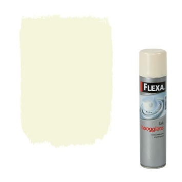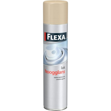 Flexa hoogglans spuitlak in de kleur beige is geschikt voor binnen en buitengebruik. De spuitlak is toepasbaar op metaal, hout en harde kunststoffen. Voor een optimaal resultaat dient u de verf en het object in dezelfde ruimte te bewaren waar gespoten wordt. Flexa hoogglans spuitlak is niet toepasbaar over waterverdunbare verven en indien het spuiten onderbroken wordt dan de bus op de kop houden en doorspuiten, om verstopping te voorkomen. De inhoudsmaat is 400 ml.