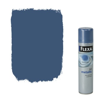 Flexa hoogglans spuitlak in de kleur blauw metallic is geschikt voor binnen en buitengebruik. De spuitlak is toepasbaar op metaal, hout en harde kunststoffen. Voor een optimaal resultaat dient u de verf en het object in dezelfde ruimte te bewaren waar gespoten wordt. Flexa hoogglans spuitlak is niet toepasbaar over waterverdunbare verven en indien het spuiten onderbroken wordt dan de bus op de kop houden en doorspuiten, om verstopping te voorkomen. De inhoudsmaat is 400 ml.