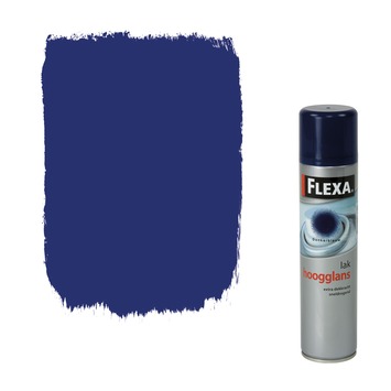Flexa hoogglans spuitlak in de kleur donker blauw is geschikt voor binnen en buitengebruik. De spuitlak is toepasbaar op metaal, hout en harde kunststoffen. Voor een optimaal resultaat dient u de verf en het object in dezelfde ruimte te bewaren waar gespoten wordt. Flexa hoogglans spuitlak is niet toepasbaar over waterverdunbare verven en indien het spuiten onderbroken wordt dan de bus op de kop houden en doorspuiten, om verstopping te voorkomen. De inhoudsmaat is 400 ml.
