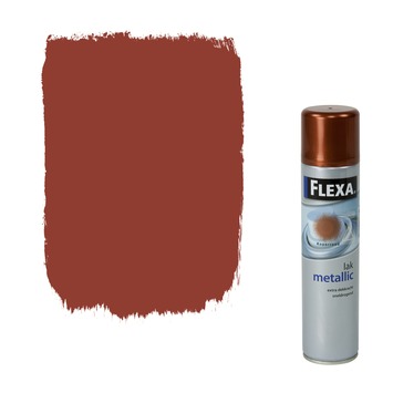 Flexa hoogglans spuitlak in de kleur koperrood metallic is geschikt voor binnen en buitengebruik. De spuitlak is toepasbaar op metaal, hout en harde kunststoffen. Voor een optimaal resultaat dient u de verf en het object in dezelfde ruimte te bewaren waar gespoten wordt. Flexa hoogglans spuitlak is niet toepasbaar over waterverdunbare verven en indien het spuiten onderbroken wordt dan de bus op de kop houden en doorspuiten, om verstopping te voorkomen. De inhoudsmaat is 400 ml.