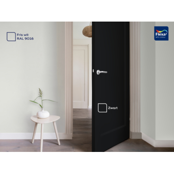 Zwart is een krachtige, tijdloze kleur met een diepe uitstraling. De tint vormt een stijlvol contrast op binnendeuren, meubels of kozijnen en komt goed tot zijn recht in combinatie met witte of grijze tinten, lichte houtsoorten of metaal. Zwart past binnen moderne, industriële en minimalistische interieurs.