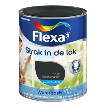 Flexa Strak in de lak zijdeglans in de kleur grachtgroen 750 ml is geschikt voor binnengebruik. De watergedragen lak is toepasbaar op hout en i.c.m. de juiste grondverf ook op metaal en harde kunststoffen. Gebruik Flexa Strak in de lak zijdeglans bijvoorbeeld voor het lakken van uw kozijnen of deuren. De zijdeglans lak van Flexa Strak in de lak heeft een optimale dekking en is krasvast. Bovendien is de lak sneldrogend, geurarm en niet vergelend. De inhoudsmaat is 750 ml. Naast de standaard beschikbare kleuren is deze lak in meer dan 30.000 verschillende kleuren te verkrijgen bij onze verfmengbalie in de GAMMA bouwmarkt.