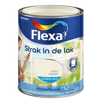 Flexa Strak in de lak zijdeglans in de kleur ivoorwit 750 ml is geschikt voor binnengebruik. De watergedragen lak is toepasbaar op hout en i.c.m. de juiste grondverf ook op metaal en harde kunststoffen. Gebruik Flexa Strak in de lak zijdeglans bijvoorbeeld voor het lakken van uw kozijnen of deuren. De zijdeglans lak van Flexa Strak in de lak heeft een optimale dekking en is krasvast. Bovendien is de lak sneldrogend, geurarm en niet vergelend. De inhoudsmaat is 750 ml. Naast de standaard beschikbare kleuren is deze lak in meer dan 30.000 verschillende kleuren te verkrijgen bij onze verfmengbalie in de GAMMA bouwmarkt.