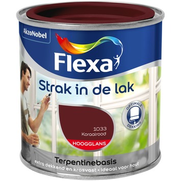 Flexa Strak in de lak hoogglans lak in de kleur koraalrood is geschikt voor binnen en buitengebruik. De terpentinegedragen lak is toepasbaar op hout en i.c.m. de juiste grondverf ook op metaal en harde kunststoffen. Gebruik Flexa Strak in de lak bijvoorbeeld voor het lakken van uw kozijnen of deuren. De koraalrode hoogglans lak van Flexa Strak in de lak heeft een optimale dekking en is krasvast. De inhoudsmaat is 250 ml. Naast de standaard beschikbare kleuren is deze lak in meer dan 30.000 verschillende kleuren te verkrijgen bij onze verfmengbalie in de GAMMA bouwmarkt.