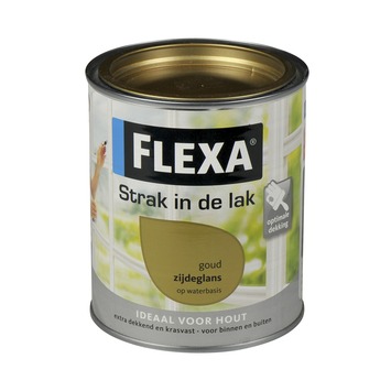 Flexa Strak in de lak Zijdeglans 750ML Goud is een aflak op terpentinebasis die je zowel binnen als buiten kunt gebruiken. Je kunt het met de kwast en met de roller aanbrengen op bijvoorbeeld deuren en kozijnen. Door de extra dekking en goede vloeiing bereik je met Flexa Strak in de lak eenvoudig en snel een mooi en strak eindresultaat. Flexa Strak in de lak is krasvast en vergeeld bijna niet. Daardoor maak je met Flexa Strak in de lak Zijdeglans duurzaam mooi schilderwerk met een vertrouwde kwaliteit.
