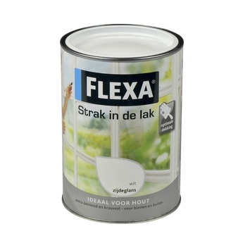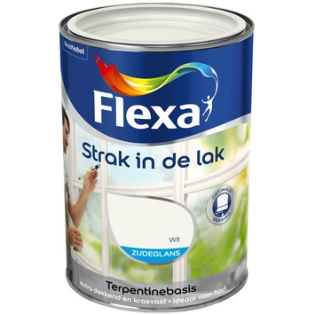 Flexa Strak in de lak zijdeglans lak in de kleur wit is geschikt voor binnen en buitengebruik. De terpentinegedragen lak is toepasbaar op hout en i.c.m. de juiste grondverf ook op metaal en harde kunststoffen. Gebruik Flexa Strak in de lak bijvoorbeeld voor het lakken van uw kozijnen of deuren. De witte zijdeglans lak van Flexa Strak in de lak heeft een optimale dekking en is krasvast. Lichte kleuren op terpentinebasis kunnen binnenshuis naar verloop van tijd geel worden op plaatsen die niet veel in contact komen met daglicht. Op deze plaatsen kunt u daarom het beste een lak op waterbasis gebruiken. De inhoudsmaat is 1,25 liter. Naast de standaard beschikbare kleuren is deze lak in meer dan 30.000 verschillende kleuren te verkrijgen bij onze verfmengbalie in de GAMMA bouwmarkt.