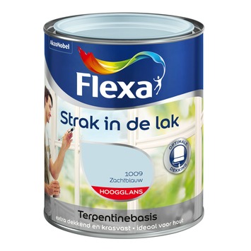 Flexa Strak in de lak hoogglans lak in de kleur zacht blauw is geschikt voor binnen en buitengebruik. De terpentinegedragen lak is toepasbaar op hout en i.c.m. de juiste grondverf ook op metaal en harde kunststoffen. Gebruik Flexa Strak in de lak bijvoorbeeld voor het lakken van uw kozijnen of deuren. De zacht blauwe hoogglans lak van Flexa Strak in de lak heeft een optimale dekking en is krasvast. De inhoudsmaat is 750 ml. Naast de standaard beschikbare kleuren is deze lak in meer dan 30.000 verschillende kleuren te verkrijgen bij onze verfmengbalie in de GAMMA bouwmarkt.