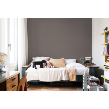 Leisteengrijs is een diepe grijstint met een koele, antracietachtige ondertoon. De kleur combineert goed met lichte tinten zoals wit, zand of lichtgrijs en werkt mooi samen met materialen zoals beton, metaal of donker hout. Leisteengrijs past goed binnen industriële, moderne en minimalistische interieurs en is geschikt voor zowel kleinere accenten als grotere oppervlakken.