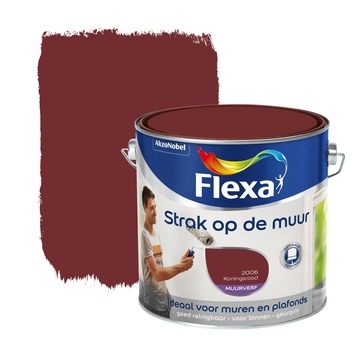Flexa Strak op de muur muurverf in de kleur koningsrood en een matte finish. De muurverf heeft een hoge kleurkwaliteit, is watergedragen en eenvoudig aan te brengen. Flexa muurverf Strak op de Muur is geschikt voor alle muren en plafonds binnenshuis, ook voor de badkamer en keuken. De inhoudsmaat is 2,5 liter. Naast de standaard beschikbare kleuren is deze verf in meer dan 30.000 verschillende kleuren te verkrijgen bij onze verfmengbalie in de GAMMA bouwmarkt.