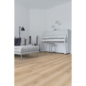 De Flexxfloors Click Basic PVC vloer in Coral heeft een natuurlijke houten uitstraling en voelbare houtstructuur. Het PVC in bruin eiken decor is zeer onderhoudsvriendelijk omdat het eenvoudig te reinigen is. De vloer heeft een klikverbinding, waardoor het leggen van het PVC eenvoudig gaat en een naadloos effect heeft. De kunststof vloer is geschikt voor intensief woongebruik en licht commercieel gebruik. De vloer kan ook gelegd worden in vochtige ruimtes in huis en is geschikt voor gebruik bij vloerverwarming. De Flexxfloors Click Basic vloer is ook te gebruiken in combinatie met Flexxstairs traprenovatie. Let op: de vloertemperatuur mag na het leggen niet hoger dan 28°C worden; gebruik ze dus daarom niet in ruimtes met direct zonlicht op de vloer.