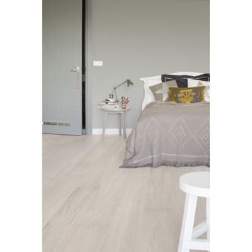 De Flexxfloors Click Deluxe PVC vloer in Tanami heeft een koele houten uitstraling en voelbare houtstructuur. Het PVC heeft een beige decor en een V-groef aan alle zijden. Deze is zeer onderhoudsvriendelijk omdat het eenvoudig te reinigen is. De vloer heeft een klikverbinding, waardoor het leggen van het PVC eenvoudig gaat en een naadloos effect heeft. Deze PVC vloer is geschikt voor intensief commercieel gebruik. Daarnaast zijn Flexxfloors Click Deluxe vloeren geluiddempend en bestand tegen zonlicht en zijn ze dus geschikt voor elke ruimte in het huis. Dankzij de sterke beschermlaag is de kunststof vloer zeer geschikt voor gebruik in vochtige ruimtes. De Rigid Composit Board drager maakt deze vloer extreem stabiel en waterbestendig. Deze vloer kan in combinatie met vloerverwarming (op basis van warmwater tot max. 28°C) gelegd worden. Het is mogelijk om deze vloer te gebruiken in combinatie met Flexxstairs traprenovatie.