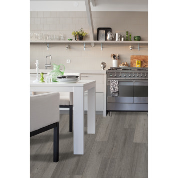 De Flexxfloors Click Deluxe XB Stormy heeft een mooie houtstructuur afwerking waardoor de vloer tot leven komt. Flexxfloors Click Deluxe XB is nauwelijks te onderscheiden van echt houten vloeren; de extra brede planken geven een zacht en warm gevoel aan je voeten. De Stormy geeft, met zijn mooie grijze houtdecor, een natuurlijke en moderne uitstraling aan je interieur. Daarnaast hebben de planken een v-groef aan alle zijdes.
