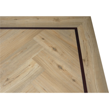 Met de Flexxfloors kunststof vloerbies wengé rand maak je je vloer af. Door de kleur en het decor van wengé is deze rand vooral goed te combineren met vloeren met een eikenhouten decor. Een zelfklevende laag onder de rand maakt dat hij eenvoudig en snel aan te leggen is. Zo kan je er bijvoorbeeld een visgraatmotief mee leggen. Bovendien is de rand slijtvast en blijft daarom mooi onderdeel. Kortom, met de Flexxfloors kunststof vloerbies wengé voeg je eenvoudig accenten toe aan je vloer met eikenhouten decor.