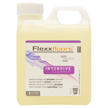 Voor intensieve reiniging van uw kunststof vloer gebruikt u Flexxfloors intensive cleaner transparant 1 liter Tijdens de periodieke grote schoonmaak geeft u uw vloer met deze intensive cleaner een perfecte reiniging. Met een volume van 1 liter reinigt u al snel vijftig vierkante meter. De Flexxfloors intensive cleaner heeft een optimaal effect in combinatie met een nabehandeling van Flexxfloors onderhoudsmiddel protective finish, welke een slijtvaste beschermlaag over de vloer aanbrengt. Met een stempel van der Grüne Punkt is dit product overigens milieuvriendelijk. Flexxfloors intensive cleaner transparant is hét middel voor intensieve reiniging van uw kunststofvloer.