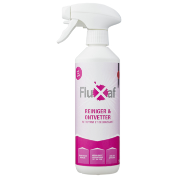 Met Fluxaf Reiniger & Ontvetter kant-en-klaar 500 ml haal je hardnekkig vuil, vet en olie in één keer weg. Je gebruikt deze kant-en-klare ontvetter bijvoorbeeld in de keuken, werkplaats of bij het schoonmaken van auto-onderdelen. Ook gereedschap maak je er gemakkelijk mee schoon. Je hoeft niets te mengen want het product is direct klaar voor gebruik.