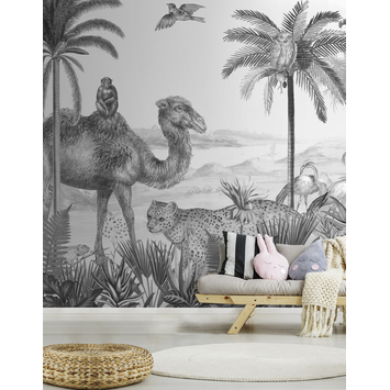 Met het PVC vrije Fotobehang Safari (113325) van Art for the home maak je van een saaie muur in je kamer een echte eyecatcher. Dit trendy zwart-wit safari behang is gedrukt op vliesbehang en ideaal voor bijvoorbeeld een hippe kinderkamer. Het wordt geleverd in 6 banen van 50cm. Baan één past rapportloos aan baan zes dus is te verlengen tot elke gewenste breedte. Let op! dat de batchnummers hetzelfde zijn. Vliesbehang breng je heel gemakkelijk aan en is ook gemakkelijk te verwijderen, zonder daar een behangtafel of afstomer bij nodig te hebben. Je lijmt eenvoudig de muur in en het behang kan worden geplakt. Voor het beste resultaat dienen de te beplakken oppervlakken droog, vlak en egaal van kleur te zijn. Kortom, kies voor het Fotobehang Safari (113325) wanneer je op zoek bent naar een gemakkelijke en snelle manier om jouw kamer een nieuwe uitstraling te geven volgens de laatste woontrends. Dit behang is alleen online en via de zuil in de bouwmarkt te bestellen.