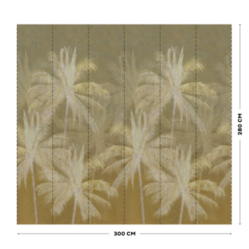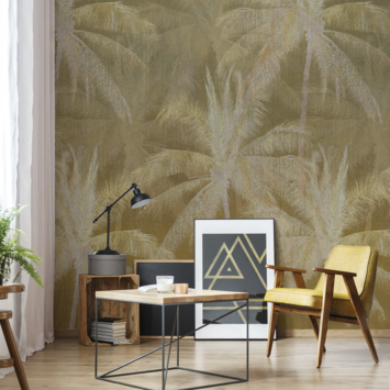 Met het Fotobehang Vintage palm oker (112124) van Art for the home maak je van een saaie muur in je kamer een echte eyecatcher. Dit fotobehang met trendy patroon in okergeel met witte palmbomen is gedrukt op vliesbehang. Het wordt geleverd in 6 banen van 50cm. Baan één past rapportloos aan baan zes dus is te verlengen tot elke gewenste breedte. Let op! dat de batchnummers hetzelfde zijn. Vliesbehang breng je heel gemakkelijk aan en is ook gemakkelijk te verwijderen, zonder daar een behangtafel of afstomer bij nodig te hebben. Je lijmt eenvoudig de muur in en het behang kan worden geplakt. Voor het beste resultaat dienen de te beplakken oppervlakken droog, egaal van kleur en vlak te zijn. Kortom, kies voor het Fotobehang Vintage palm oker (112124) wanneer je op zoek bent naar een gemakkelijke en snelle manier om jouw kamer een nieuwe uitstraling te geven volgens de laatste woontrends.