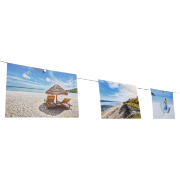 Met dit handige fotokoord hang je erg gemakkelijk bijvoorbeeld jouw foto's en kaarten op. Het fotokoord is magnetisch en met de meegeleverde 15 magneetjes hang je tot maximaal 15 foto's of kaarten op. De lengte van het koord is 2 meter. Dit fotokoord hang je horizontaal op.