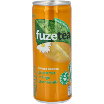 6 x 4 blikjes scherp geprijsde Fuze tea green mango 25 cl. De getoonde prijs is exclusief statiegeld voor blikjes.