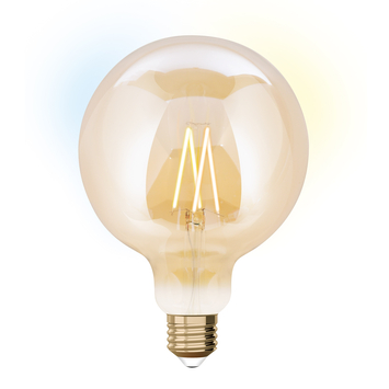 Deze bolvormige, slimme lichtbron van iDual is geschikt voor lampen met een E27-fitting. De amberkleurige ledlamp van 9 watt zorgt voor een dimbaar, aanpasbaar wit licht met een lichtopbrengst van 806 lumen. De lichtbron heeft een diameter van 14 centimeter en kan tot 15 000 branduren mee. Je kunt de lamp bedienen via de iDual afstandsbediening, los verkijgbaar.