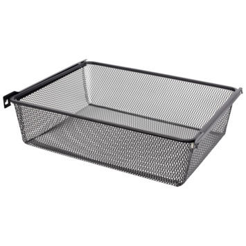 De storage gaas mand zwart inclusief geleiders hoort bij het Duraline hangende en staande storage systeem en creëert een moderne, functionele open opslagoplossing. Die op meerdere manieren kan worden gebruikt zoals voor kleding, boeken, schoenen, keukenartikelen en veel meer. Deze Duraline gaas mand is eenvoudig te monteren met de bijgeleverde geleiders. Het Duraline storage systeem heeft verschillende planken, manden en roedes om uw eigen, op maat gemaakte systeem samen te stellen.