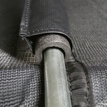 Hij is stevig en hoog. Het is een heel prettig verende trampoline. Het in elkaar zetten was wel pittig. Het doek moet tussen de buizen en niet eromheen. Dat ging even mis.