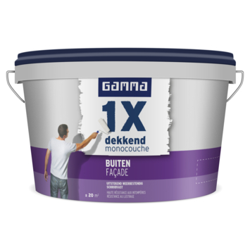 GAMMA 1x dekkend buiten is een uitstekend dekkende, weerbestendige en matte muurverf. Ideaal voor het schilderen van buitengevels en -muren, maar ook geschikt voor binnen in vochtige ruimtes, zoals de garage en kelder. Deze verf is watergedragen, duurzaam, ademend, reukarm en schrobvast. Voor toepassing buiten- en binnenshuis. Afhankelijk van de kleur en kwaliteit van de ondergrond dekt deze verf in één laag. Is je muur nog onbehandeld? Gebruik dan voorstrijk voor een optimaal resultaat.